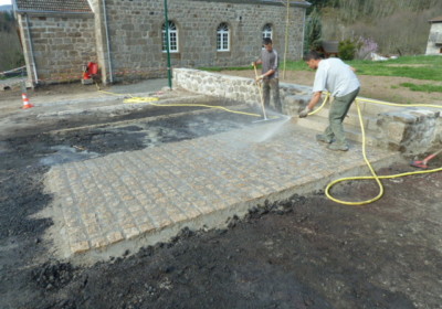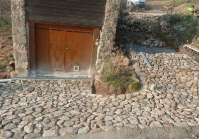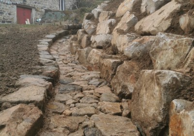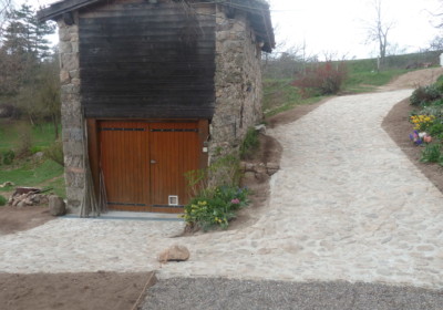 Calade et chemin pavé au Cheylard, dans les Boutières et la vallée de l’Eyrieux – Aménagements paysagers en pierre
