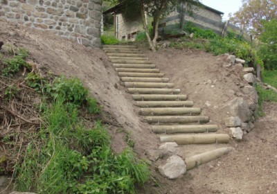 Création d’escaliers extérieurs au Cheylard, dans les Boutières et la vallée de l’Eyrieux – Travaux paysagers sur terrain en pente