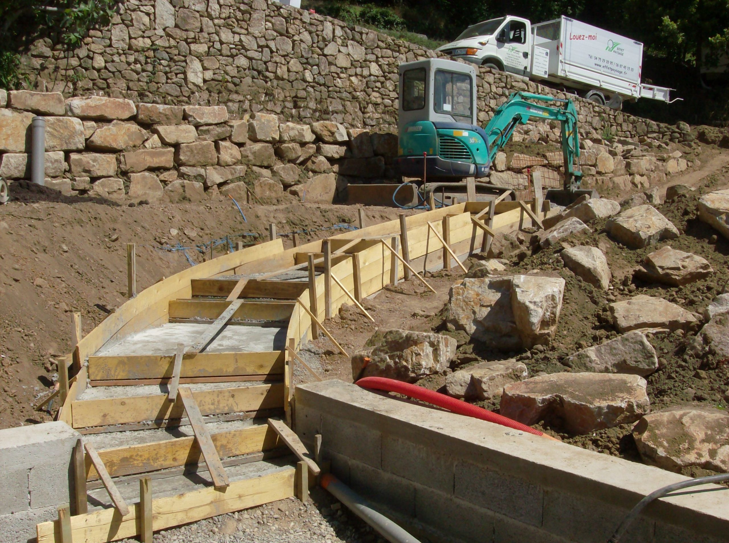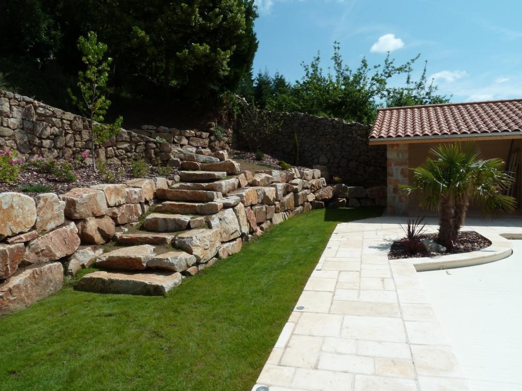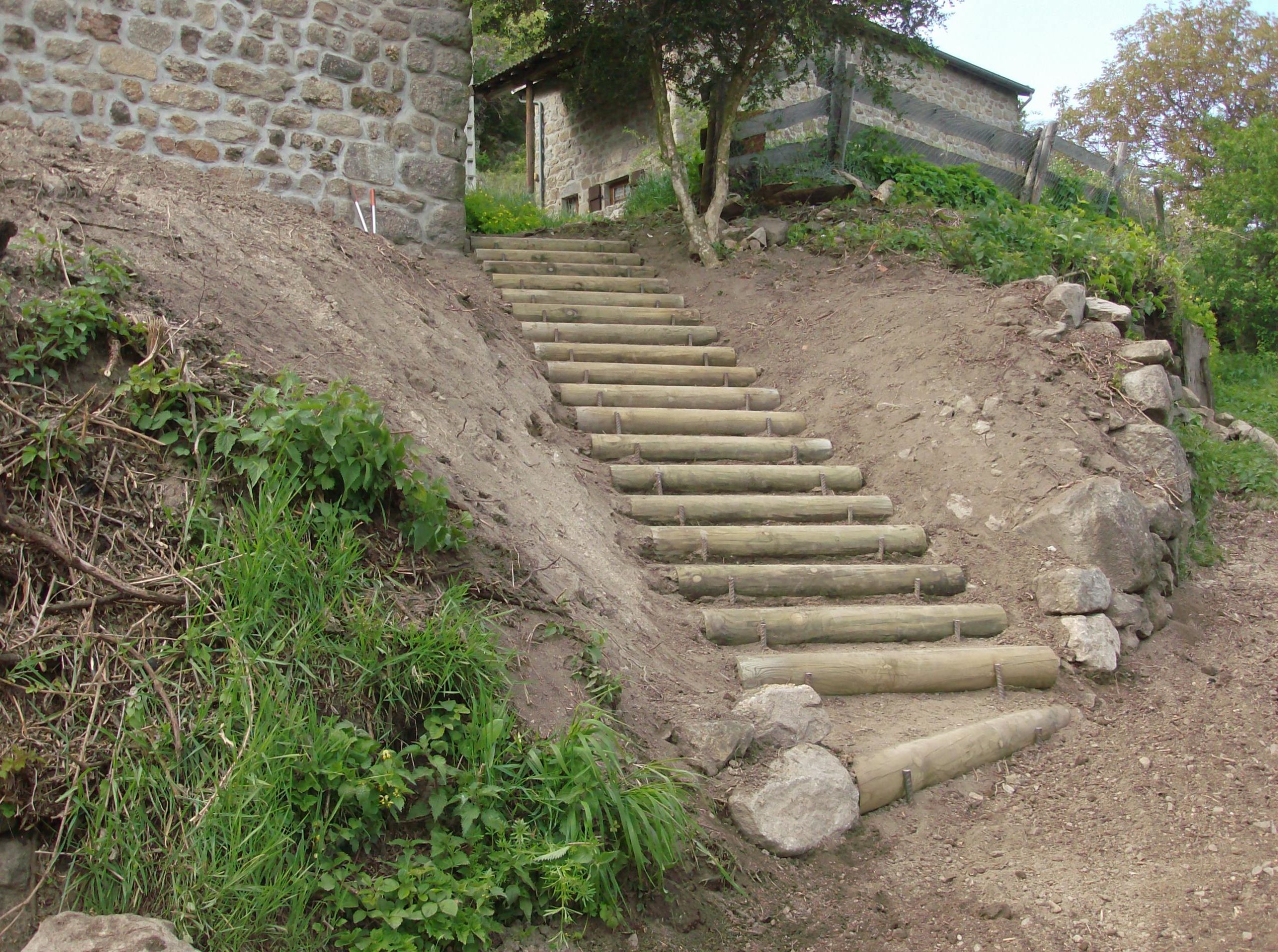 • Création d’escaliers en pierre naturelle, bois, traverses paysagères ou béton