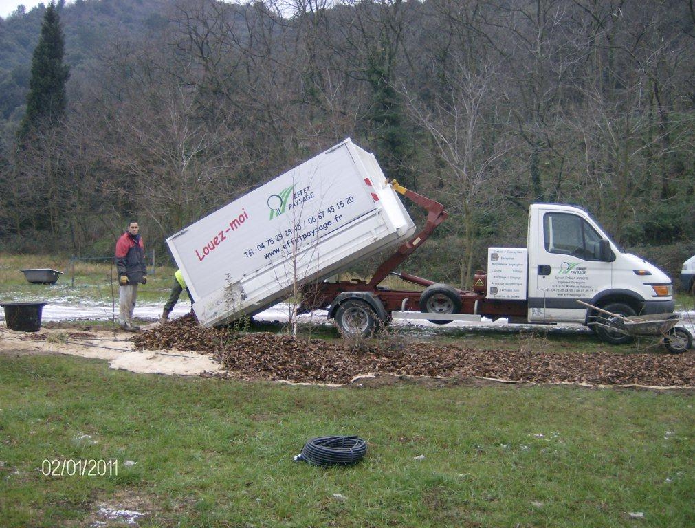 L’évacuation des déchets est une étape incontournable sur un chantier paysager, lors d’un débroussaillage, d’un élagage, d’un nettoyage de terrain ou d’un petit terrassement. Nous proposons un service simple et efficace : la mise à disposition d’une benne avec évacuation des déchets selon vos besoins.