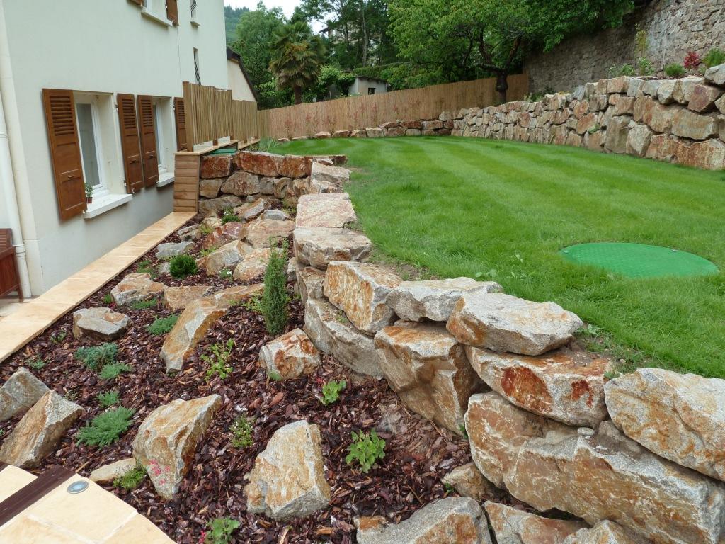 • Création de murs de soutènement en blocs béton, pierres sèches, gabions ou maçonnerie paysagère