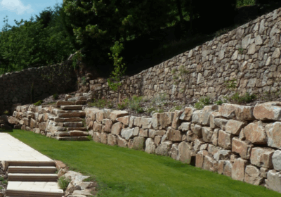 Maçonnerie paysagère : murets en pierre ou bois, murs de soutènement, terrasses, dallages, pavages, escaliers, plages de piscine…